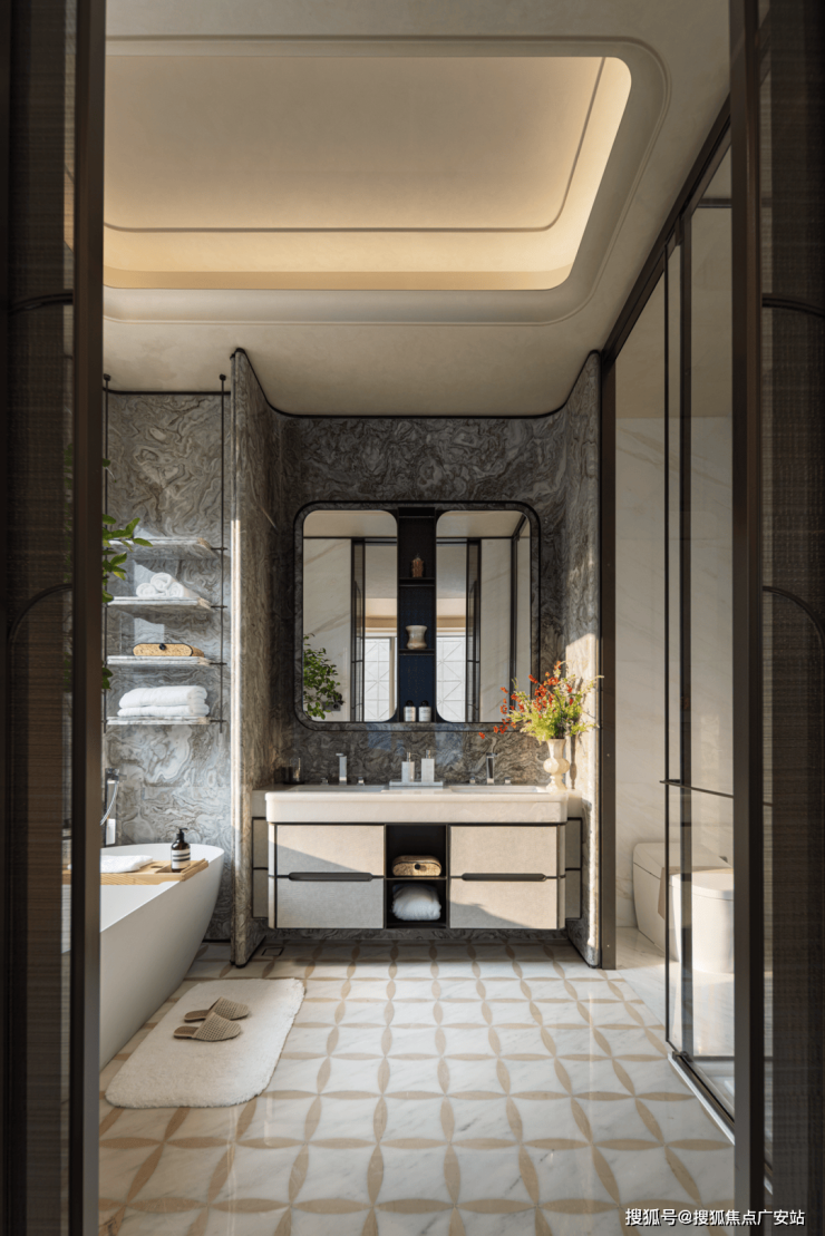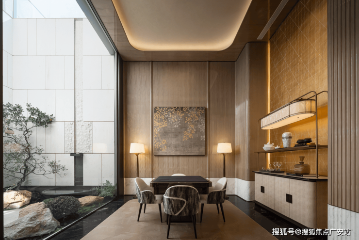 设计师将“自然且东方”的秩序纳入墙面的线条,石材的肌理,沙发的轮廓剪影,抑或是建筑的层次线条里,大宅的秩序感对照内心的安宁,在人与环境日复一日的对话中,完成内在的重构与积蓄。