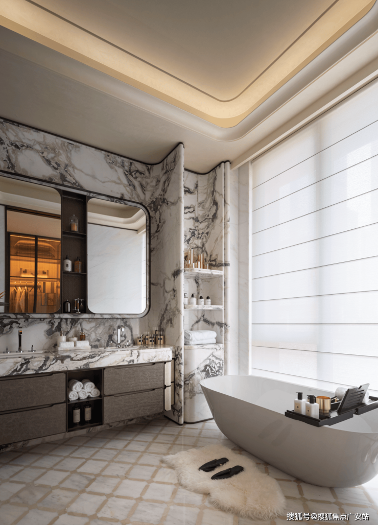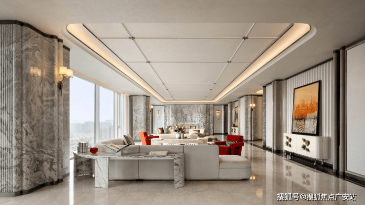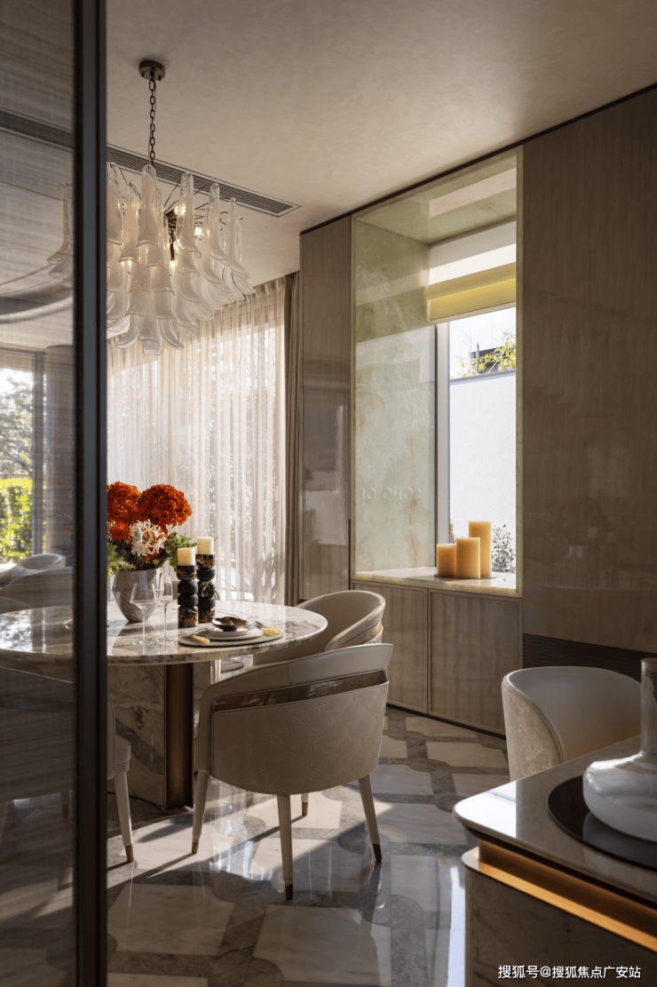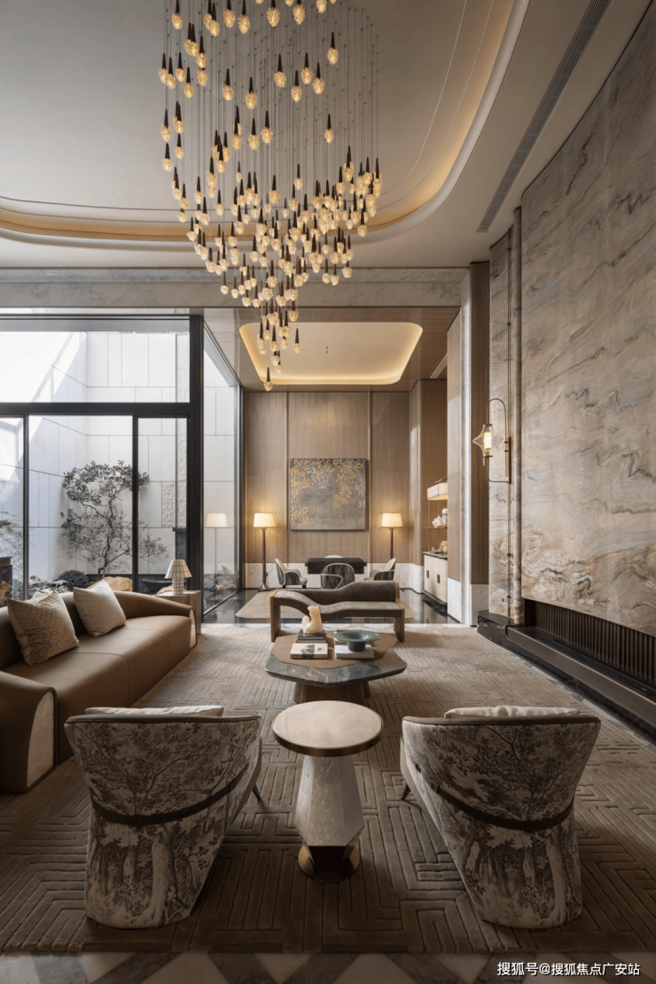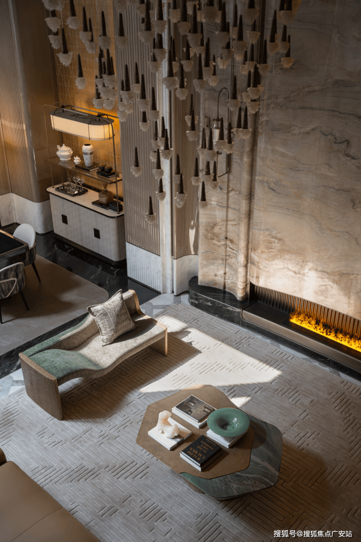 人需要“聚气”,场所也不例外,好的空间是可滋养关系的,在客厅之间,面对犹如山水肌理的温润石材,谦逊流动的建筑线条,不由得身心得以通透、自在。