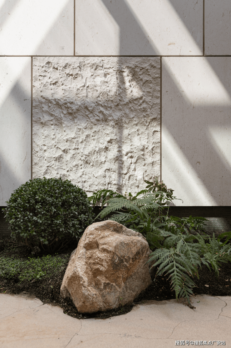 水润万物而无声,自然的力量微妙且宏大。肆意挥洒的阳光进入宅邸内外,自然的缓慢节律,令一切不疾不徐的生长。会客厅墙面如水墨肌理的奢石,为负一层场域确立了亘古、原生与厚重的基调,静静的回应着宅邸内外的勃勃生机。