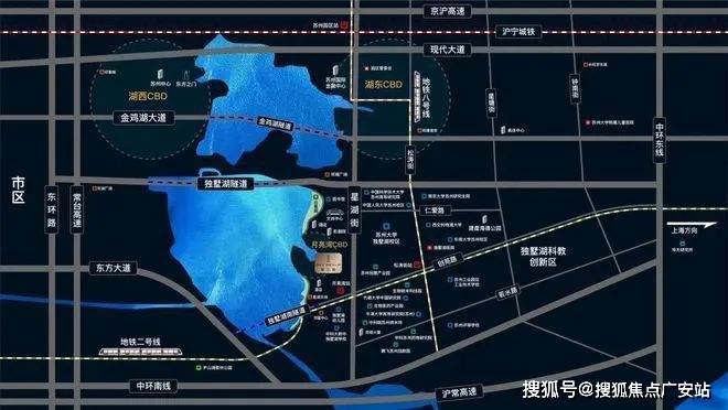 交通配套:地铁2号线月亮湾站约500米、8号线松涛街站约1千米;独墅湖隧道、中环快速路、星湖街、独墅湖大道;苏州火车站、苏州北站、苏州园区站;