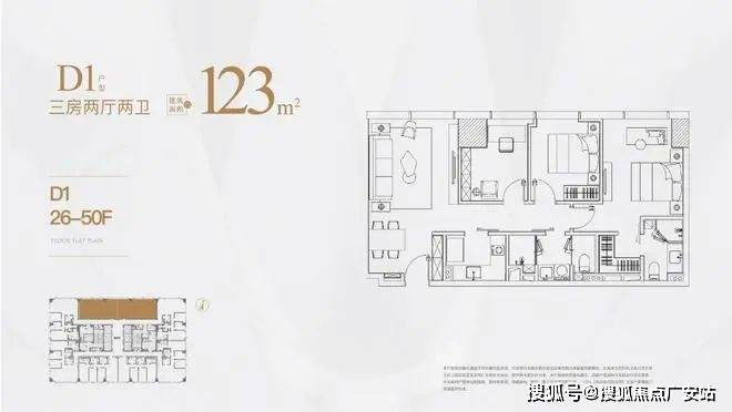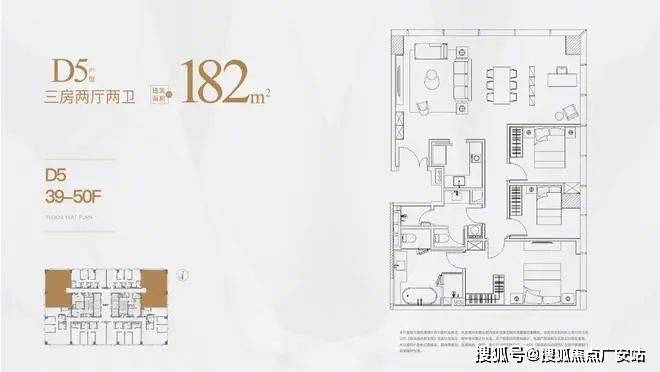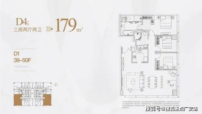 高区为39-50层,户型分别是125㎡,150㎡,180㎡。