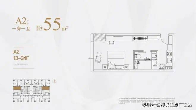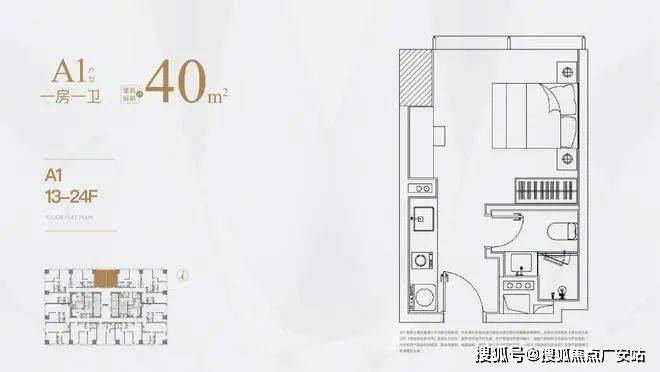 低区13-24层,户型分别是40㎡,55㎡,80㎡,107㎡;
