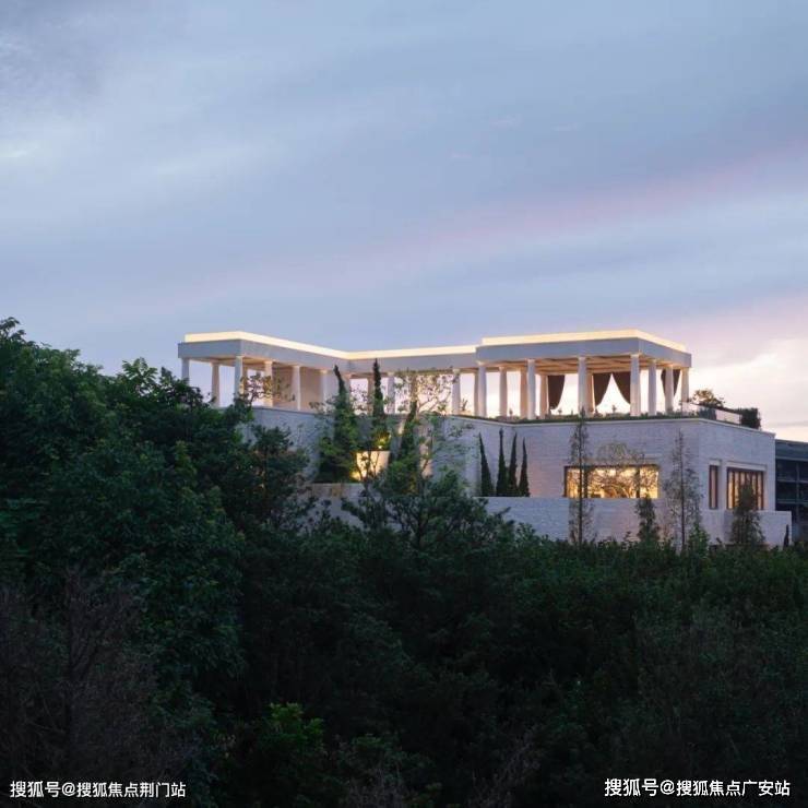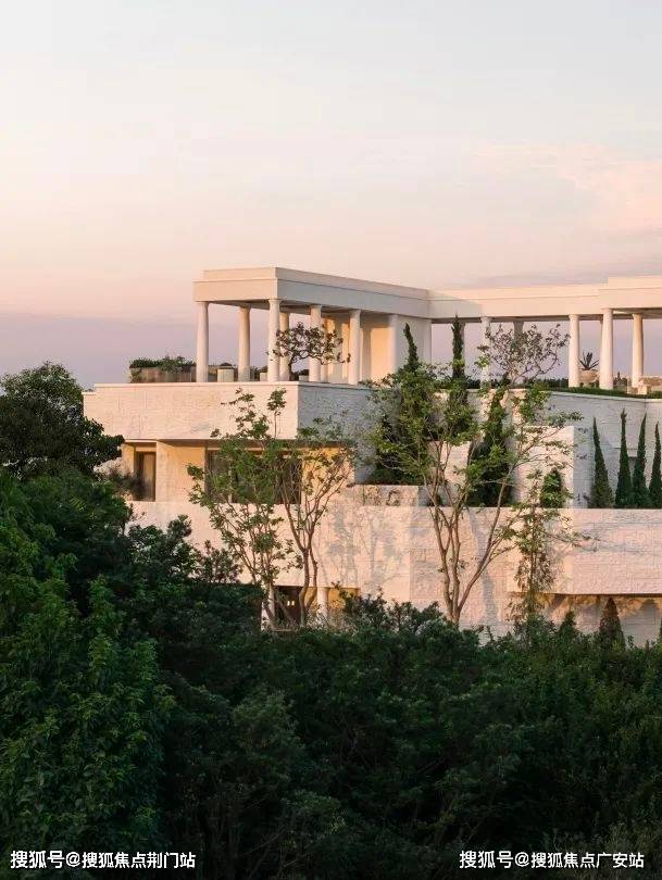三楼景观瞭望台设置悬挑9米的无边镜面水池,被法式浪漫的柱廊环抱;向南望去,群山连绵,天际线高低起伏,美不胜收。每到傍晚,太阳回到这里,带来满池的霞光,让人忘却烦恼,沉醉于这份恒久的美丽之中。