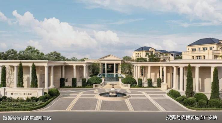 1. 色调纯净,度假美学:立面以浅暖米黄石材为底,点缀金属、玻璃,焕新法式奢华艺术气质。罗马柱与宝瓶柱阵列、隽永雕花,凝练地中海浪漫神韵,恢宏典雅。