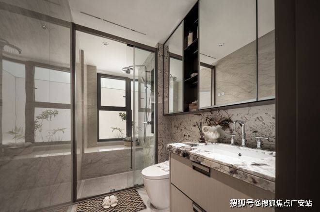 主卧豪华的套房设计,不仅南向有转角飘窗,甚至北侧卫浴都做了转角飘窗,空间延展度超强!
