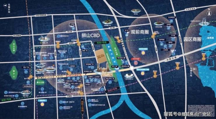 本项目在狮山 桥下,京杭大运河旁,占据了新区狮山板块的核心地段,坐享新区繁华商圈,紧邻姑苏古城风韵,集人文精神和高品质生活为一体,将打造为狮山板块乃至苏州市具有代表性的地标建筑。
