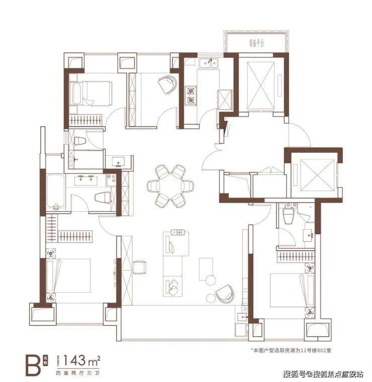 【产品信息】建筑面积约129㎡、130㎡、143㎡、144㎡宽境奢邸