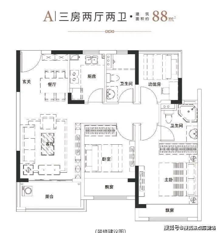 建面约88㎡|三室两厅二卫