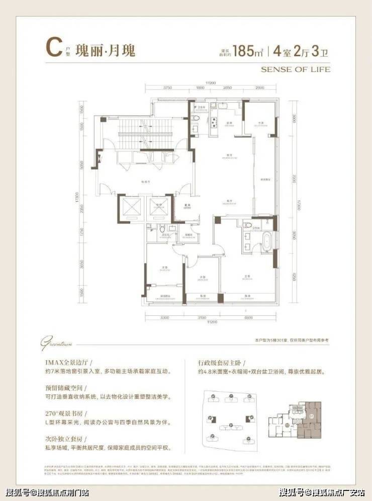 建面约185方户型,高品质的寰景奢宅: