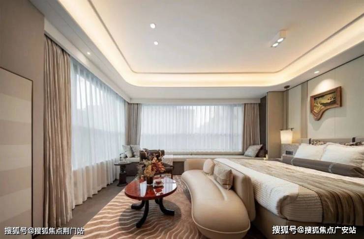 建面约170方户型实现“主卧小家化”,奢华套房式主卧,奢配衣帽间+双台盆卫浴+浴缸,同时配有大飘窗,采光和景观面不输大客厅。