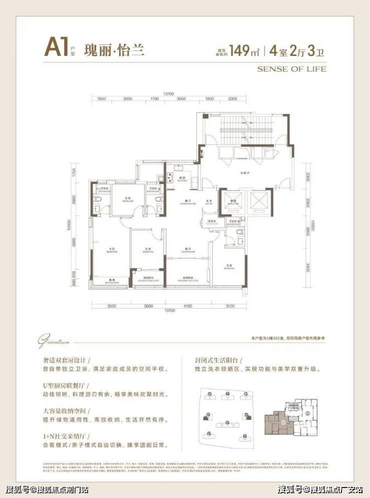 建面约149方户型,高配入门款改善选手: