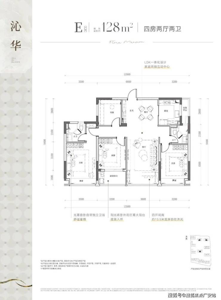 此宽境四房,既满足居住功能性,又有舒适的居住空间。三卧室+客厅,四开间朝南,享受约13.5米阔绰大面宽;灵活可变3+1房,契合三代同堂居住需求;U型厨房动线顺畅,一体化双厅,足以让家人欢聚一堂;小家化主卧套房,舒适感触手可及。