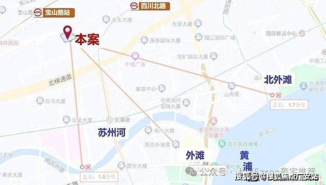 仅从图上看,该地块直线距苏州河约1公里,直线距外滩约1.4公里,直线距北外滩约1.7公里,直线距3/4号线宝山路站约300米,直线距10号线四川北路站约560米,区位优势明显。