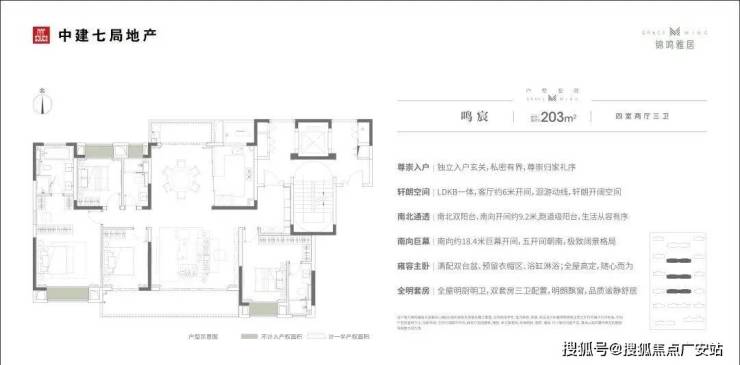 建面约143/170/203㎡户型,四室格局,南北通透;南向大面宽,双联景观阳台,