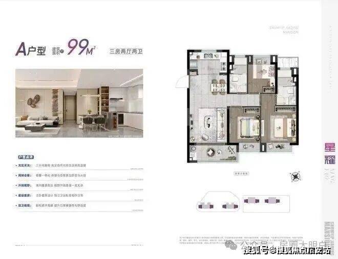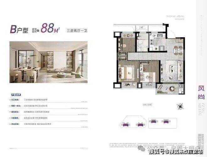 深嘉上府以88-99㎡的明星爆款小户型,圆年轻人的置业梦想。其中,88㎡户型以三房两厅一卫的格局,兼具功能性与尺度感。南向三开间,做到两间卧室朝南,这样的面宽,媲美市面上100㎡户型的新房尺度。u字形的厨房,动线合理。餐厅空间,能够从容摆放一张四人大餐桌。全屋飘窗设计,将赠送空间拉满。深嘉上府售楼处电话:400-998-7894✔✔