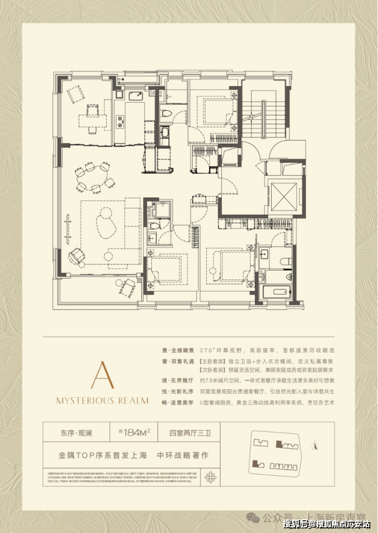 整盘全明设计:最大化保证每一户的采光面与景观视野,无暗卫,让光线与空气在此自由流动;海量收纳:海纳玄关+墙面整柜+女王镜柜,让家越住越大;