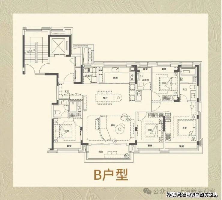 除了A户型,184的B户型则非常符合传统认知:金隅公园东序售楼处电话:400-8118-224☎️☎️经典的南北向,标准的超大面宽、短进深,克服了市区很多新房由于受地块限制,在设计时总是有一些空间不能尽如人意的弊端,四个空间朝南一定排开,全屋全明设计,没有死角,无论是空间感还是动线都很符合对户型要求较高的买家的需求。