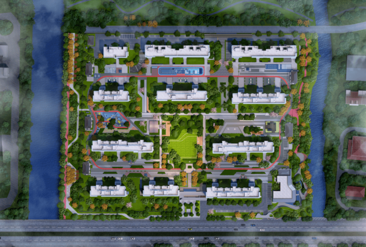 项目以精工打造人本化、艺术化、智能化、情境化的品质人居社区,通过对东方礼序文化与现代人居美学的空间布局,打造了虹悦“2轴1心,1环5区”的社区布局,让建筑的几何线条与精致细节,能够与绿境园林相互融汇,为全民健身、亲子陪伴、全龄社交铺陈了一隅奢适的舒心港湾。