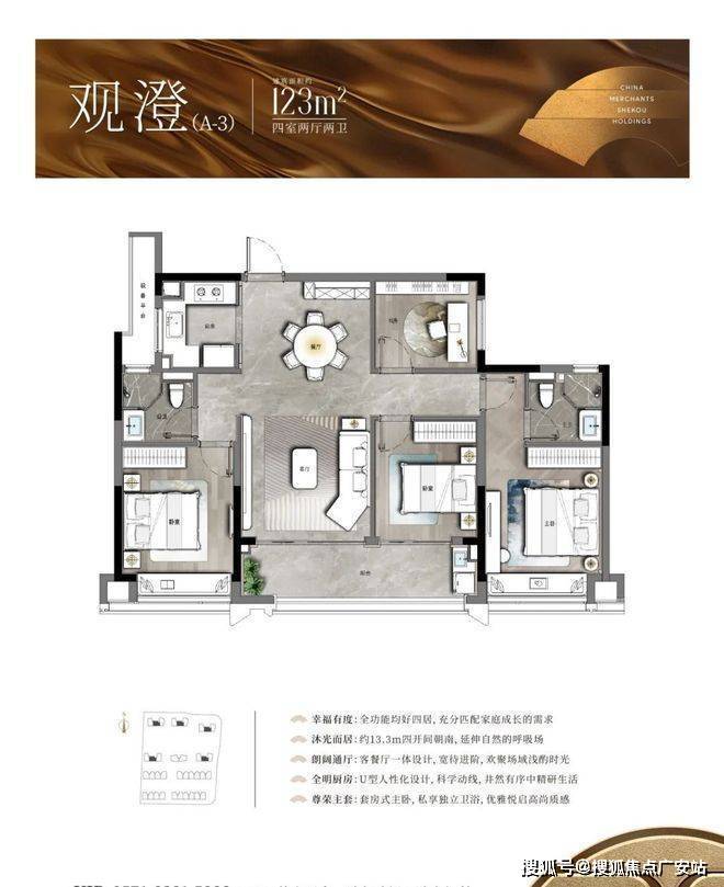户型方面,本次首开的2幢高层(9、10号楼),主推建面约123㎡的中间套,以及建面约129㎡、139㎡的边套,均为四房两厅两卫全明格局。