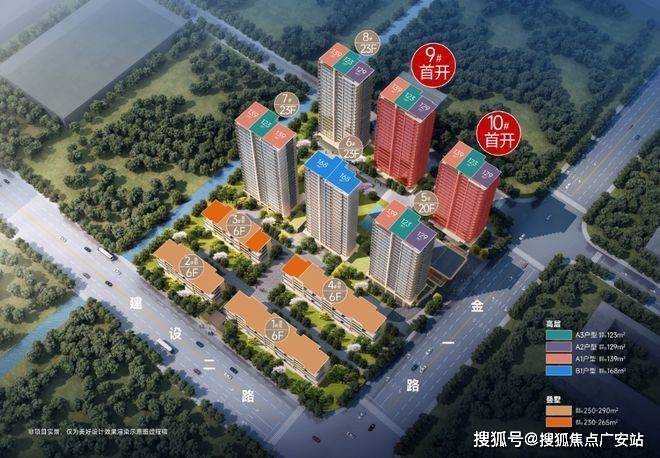 项目位于建设二路与金一路的交会处,依托方正的地形,规划了6幢高层+4幢叠排,其中高层住宅仅356套。