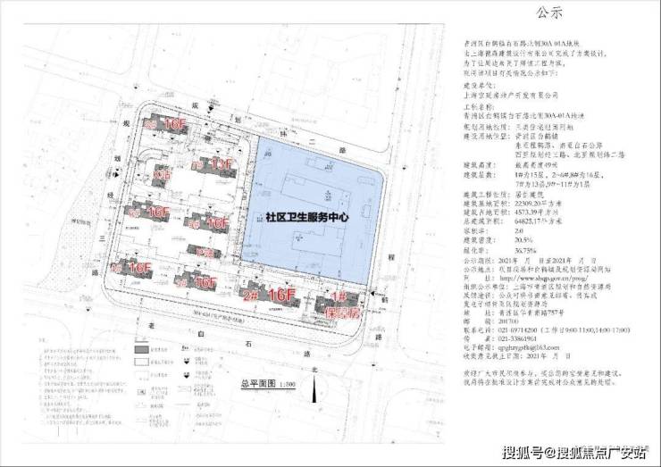 根据项目最新公示的设计方案,项目将建造包括1栋15F住宅,6栋16F住宅,1栋13F住宅,还有一个社区卫生服务中心公公共设施配套。将提供至少410套房源,100%全装修,其中中小户型占比60%。
