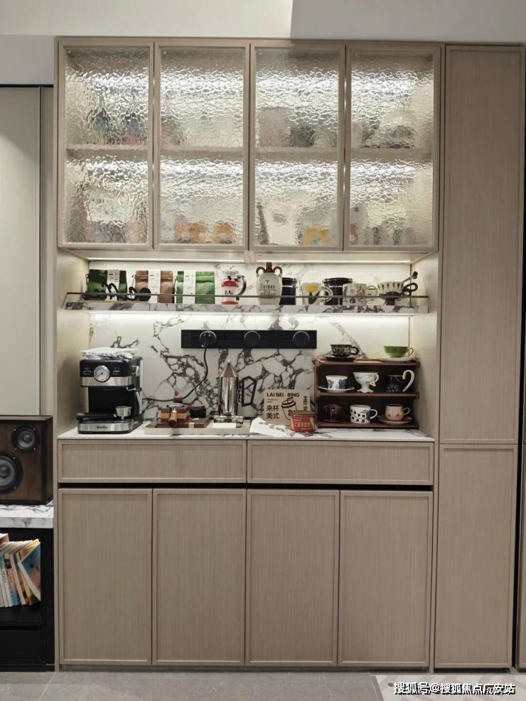 本次还增加了非常实用的零食柜和餐边柜,未来业主在这里可以作为自己的一个日咖夜酒区域。