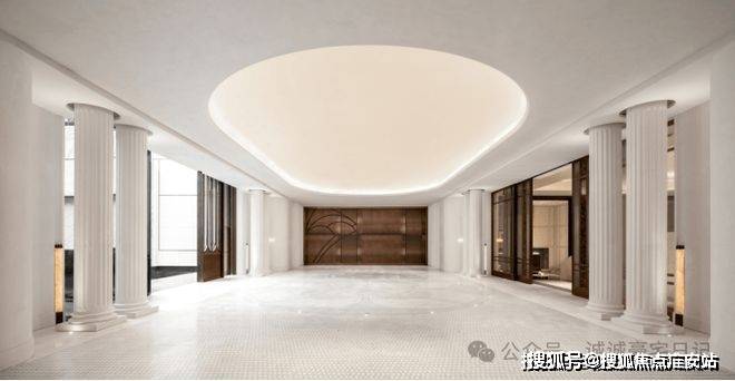 其中,星空顶泳池用纯天然优质石材打磨的罗马柱点缀。这不仅仅是一个活动空间,更是一个艺术的门庭,让业主足不出户尽享法式惬意优雅。