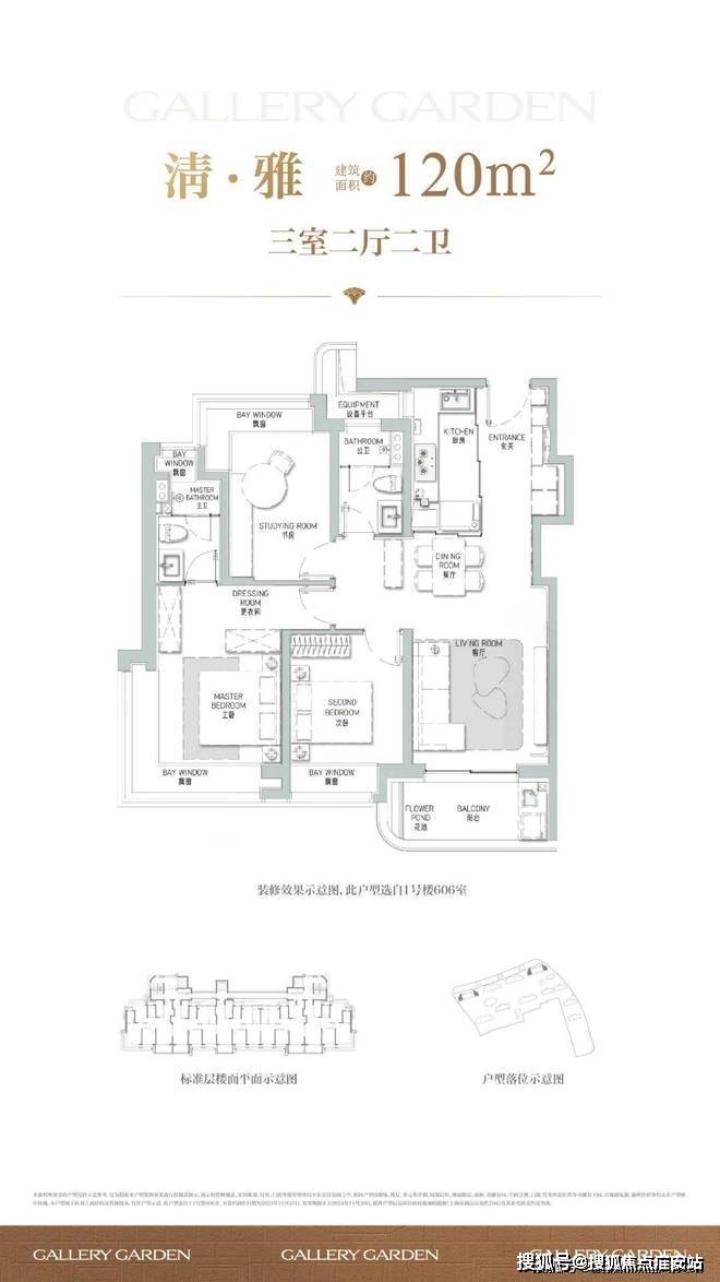 建面约120㎡的户型,定制LDKB一体化宽厅,更舒适的功能定制,270°转角窗观景套房设计,实现了居住品质与观景的完美结合。