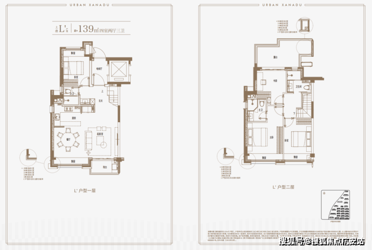 建面约139㎡上叠户型,三层是会客区,四层是居住区,阳台+露台+多个飘窗设计,附加空间非常大,在别墅类产品中实属罕见!