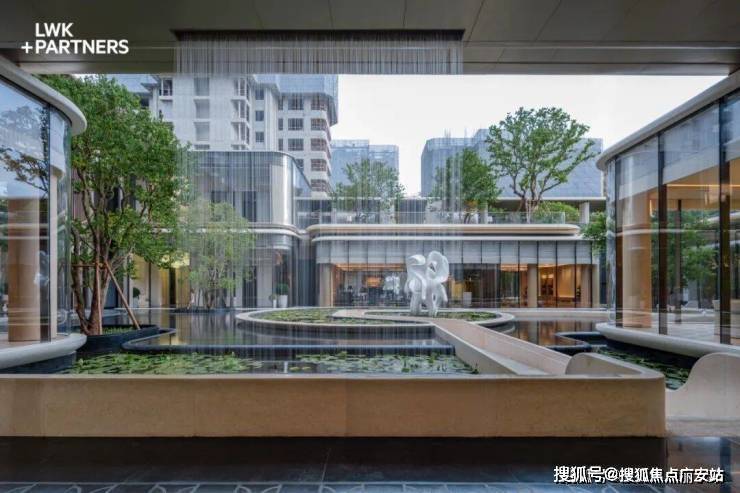 LWK + PARTNERS 董事王权带领团队打造的琶洲保利天奕示范区,设计汲取了迈阿密海岸度假酒店式美学的流动性与松弛感,融合暖白色石材与温润的几何线条,形成自然材质与极简设计语言的当代表达。项目整体以“三境十景”组织空间序列,于琶洲CBD核心区打造绿洲化人居场景,在都会快节奏与慢生活中构建诗意的平衡,树立琶洲的生活品质标杆。