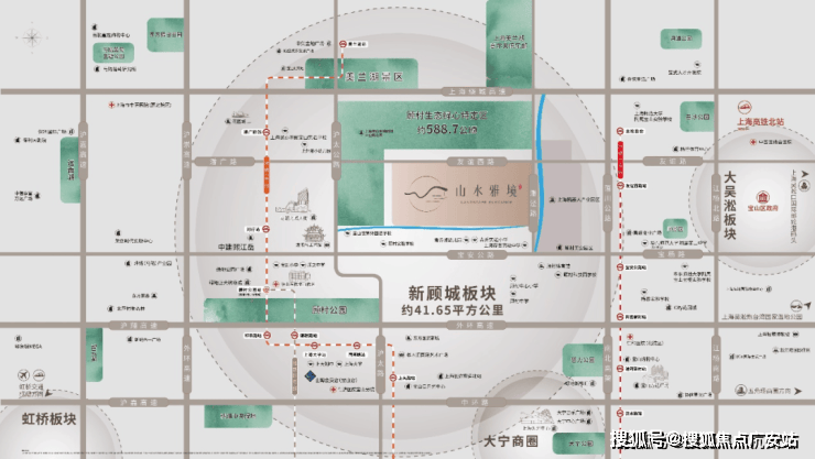 在宝山主城发展链上,新顾城位于沪太路城镇发展轴和宝杨路-宝安公路功能发展轴的轴心,东西向链接嘉定远香湖中央活动区、吴淞创新城,南北向联动南大智慧城,成为北上海产业升级转型的产城高地。