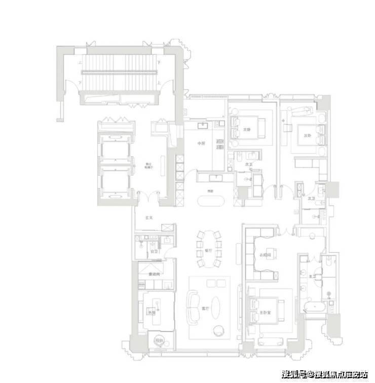 约600㎡户型是6房带4套房,完整满足了居住在平层的所有功能空间需求。