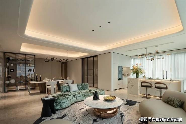 在这里,女主人在厨房准备点心,一抬眼便能看见在客厅地毯上玩耍的孩子;男主人坐在沙发上小憩,也能随时与餐厅备餐的家人闲聊。笑声与爱意,在通透的空间里自由流淌,这才是家应有的模样。