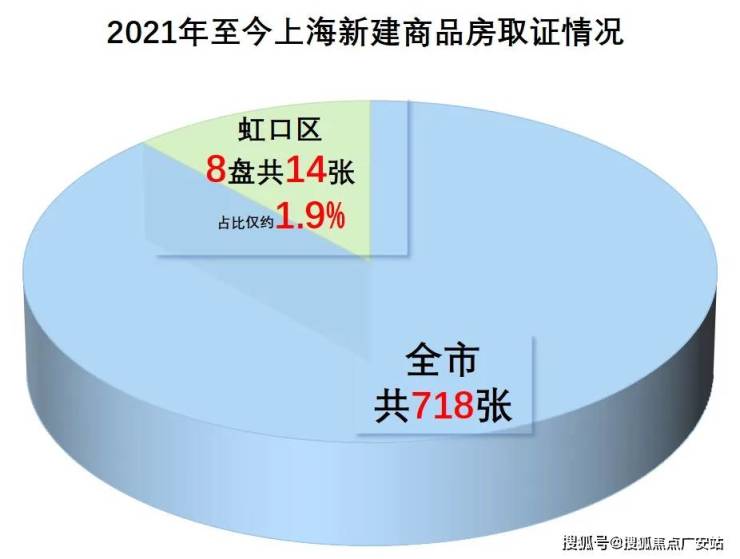 自2021年1月至今,在这将近30个月的时间内,全市新建商品房共发证718张,可整个虹口区在此期间仅有8个项目入市、取证预售证14张,占比不足2%,而新房供应总套数更是不足4000套。