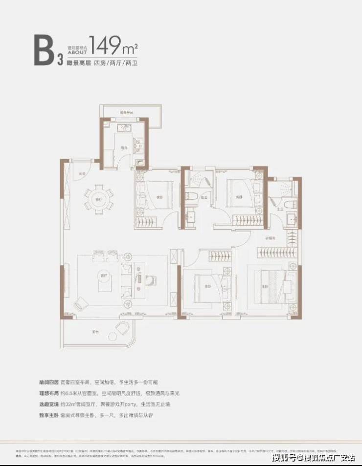 产品为建筑面积约195㎡的四房四卫的联排、建筑面积约95㎡-140㎡左右的三房两卫及四房两卫的洋房、以及建筑面积约60-140㎡的高层户型。