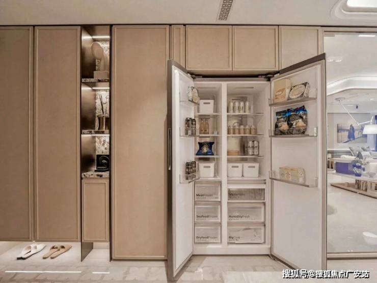 标配玄关收纳,S墙设计将冰箱外置;主卧衣柜嵌入进门处,避免开门挡路,更让 1.8米大床与双床头柜从容摆放,从显性空间到隐形角落都不浪费。