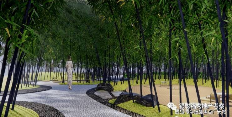 园门为序曲,岛、池、树、水等自然风物相映成彰,是为秋水书院;翠竹夹道成绿荫,曲径通平台,是为幽篁竹林。