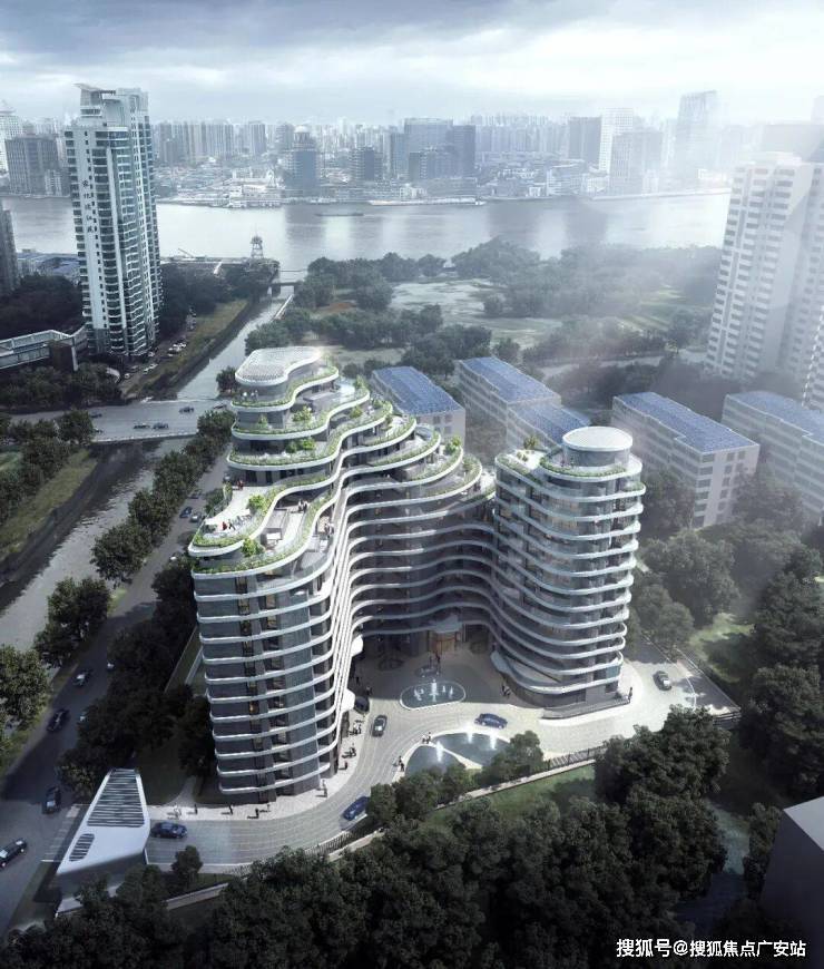 国际获奖波浪艺术公建立面,梯田退台,户户最大化江景视野