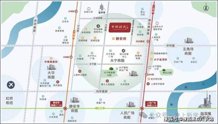 商业:周边有大润发购物300米、大宁国际商业广场大融城、日月光,大宁国际商业广场、大宁久光1500米、大宁中心广场、宝华国际广场、协信星光广场等一批商业综合体,以及园区内部主题餐饮、中西式快餐、西点房、商超、自助银行等,一应俱全让大宁成为继南京西路商圈后的静安第二大商圈,生活配套资源极其丰富,非常适合追求高品质生活的人士置业是集宜商、宜住、宜租三位一体,兼具投资和自用的功能品质,同时满足了温馨家居、创意办公、专业投资的多元化需求。