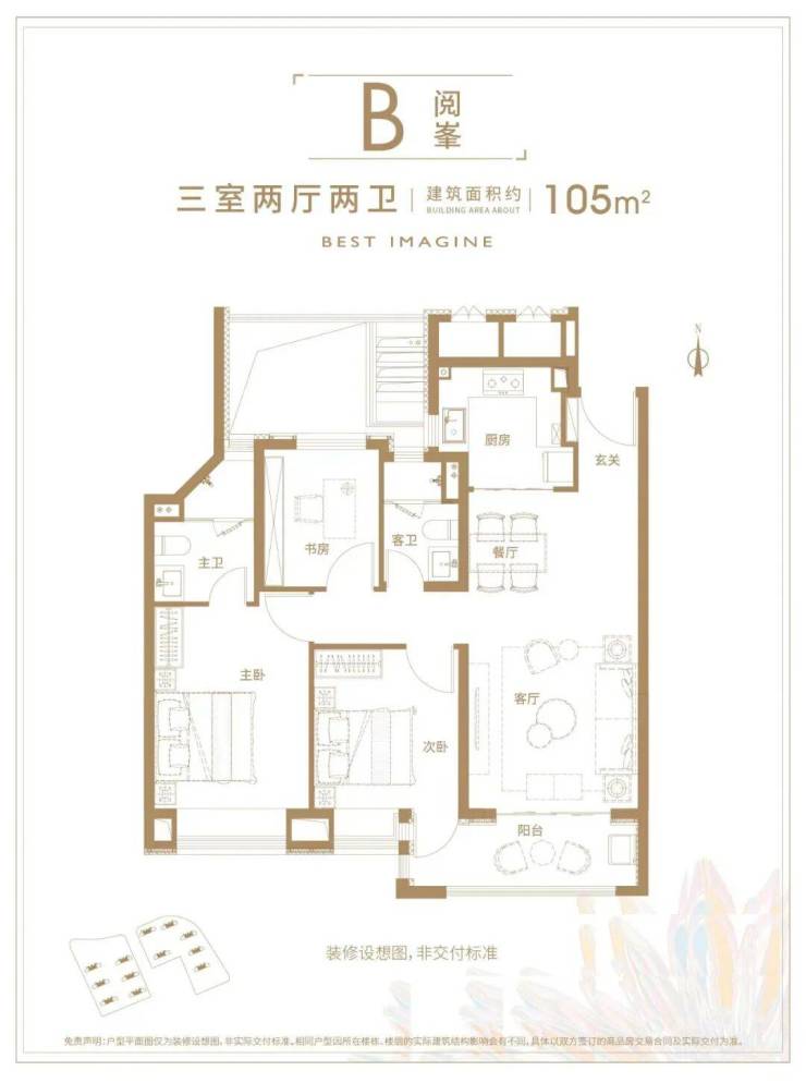 除此之外,项目还有建面约125㎡宽绰三房户型: