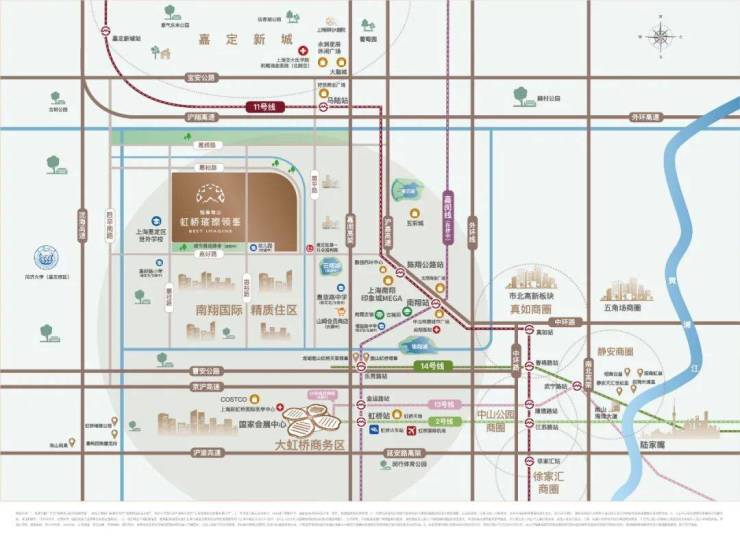 论地段,南翔紧贴外环线,与虹桥主城区、唐镇属于同一纬度的板块。
