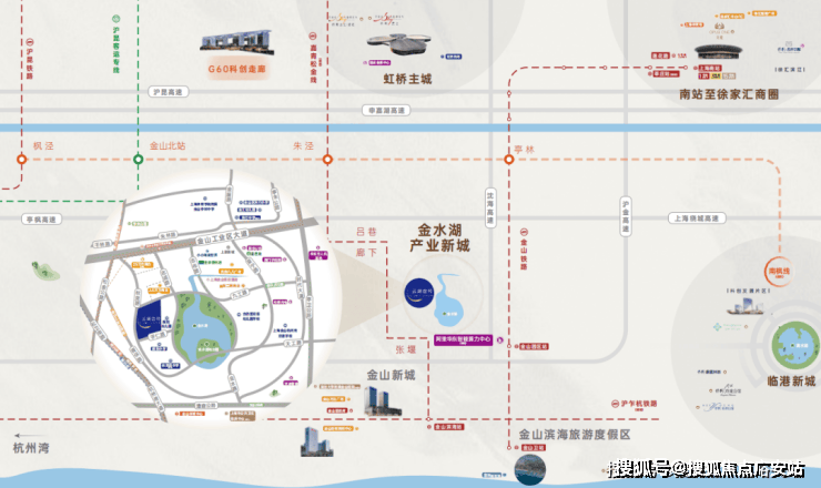 项目地处金山金水湖产业新城内,金水湖产业新城围绕“创业金山、宜居金山、和谐金山”的总体目标,以“绿色生态、低碳节能、智慧互联”为三大特色亮点,打造集居住生活、商务办公、休闲娱乐于一体的现代化智慧新城。