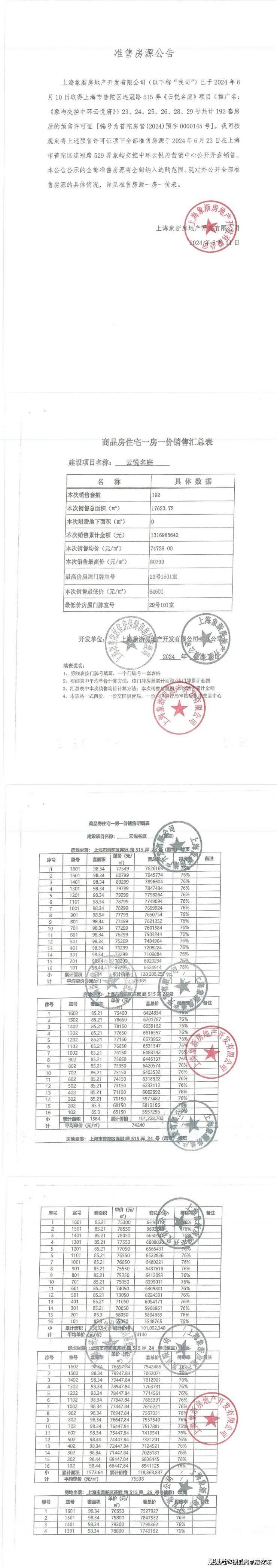 最新一房一价表: