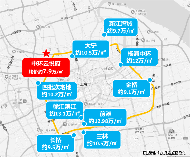 同板块新房项目金茂景泰府、宝华紫薇花园、中环桃浦项目等,联动价均在83000元/㎡左右。