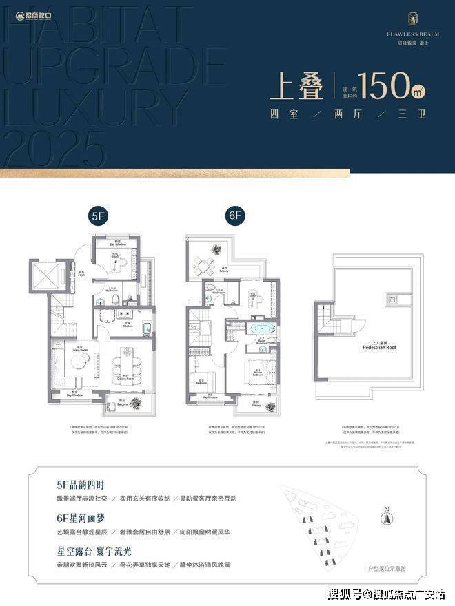 建面约148-152㎡滨水叠墅|终极改善藏品:板块罕见滨水叠墅,上叠自带南北露台+可上人屋面,莳花弄草、星空小聚,独享空中天地;下叠拥享私家庭院+5.5米挑高地下室,庭院养花遛娃、地下室改造影院、健身区、藏品室,解锁多元生活;双层朝南布局,采光优越、私密性拉满,1200万起圆中环叠墅梦,是改善家庭终极置业的不二之选。