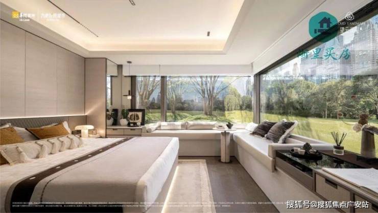 【揽云套房】主卧套房设计,270°超大转角瞰景飘窗,与云城都会璀璨同框