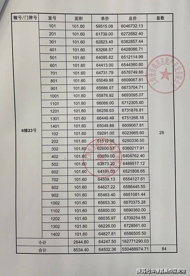 一房一价表发布: