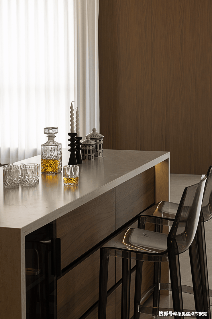 中岛设计既独立又能和其他空间联动起来,变成一个更大的休闲区、社交场,可开可合、可静可动,让空间有了更多的可能性。