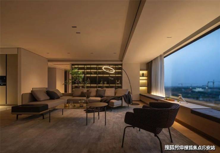 客厅整面落地窗在视觉和体验中串联了内与外,最大限度摄取室外自然光线和窗外自然之景,引景入室。