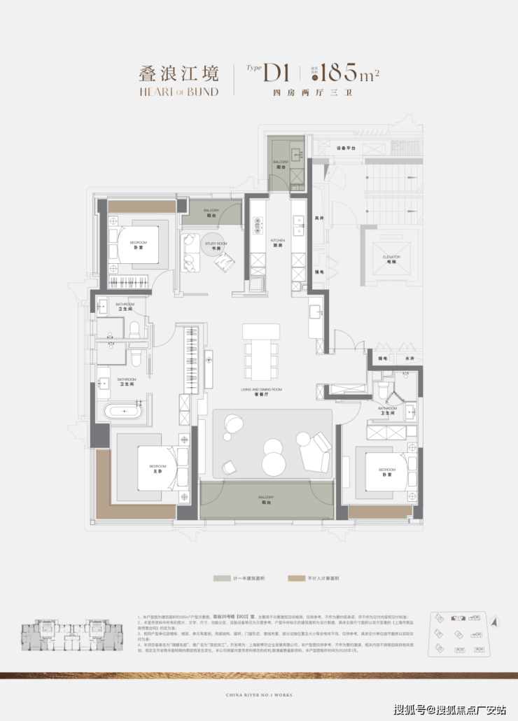 一梯一户的私密格局、3米进深玄关的归家仪式,搭配近11米景观落地窗与超60㎡滨江天际会客厅,构成IMAX环幕生活剧场,满足名流沙龙、家族聚会等多重仪式感场景。从双南向套房配置,到5.1米宽西南向观景阳台,再到隐形智慧收纳系统与柔性焕肤美学,空间在功能与尺度上实现巅峰平衡,让奢侈深藏于便捷与秩序,真正实现“收藏世界,亦定义自我”的居住哲学。